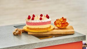 Verwen je vrienden of familie met deze heerlijke taart. De vulling van citroenmousse, frambozenmousse en lemon curd maakt ‘m onweerstaanbaar lekker. En het is ook nog eens een pareltje om te zien!
