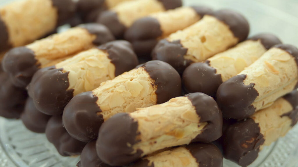 De bakkers beginnen met de technische opdracht: bokkenpootjes. Een klassieker en natuurlijk heerlijk om zelf te maken. Een beetje chewy, met amandelschaafsel en chocolade, wat wil je nog meer?