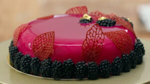 Er is een duidelijke vereiste voor dit pronkstuk: het is de bedoeling dat de jury zichzelf kan zien in deze spiegeltaart. ‘Wil je de spiegel mooi laten hechten op de mousse? Dan moet die echt ijs- en ijskoud zijn’, vertelt Robèrt. Een hele opgave in 2 uur.