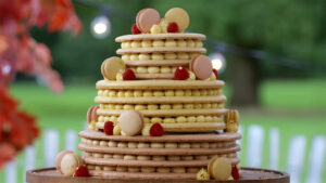 De 3 finalisten Kim, Ine en Zeinab moeten een pronkstuk maken met macarons. Die zijn normaal gesproken al best lastig om te maken. Laat staan in de tent, waar regelmatig dingen anders gaan dan thuis. Wat vond Zeinab van deze finale-opdracht?