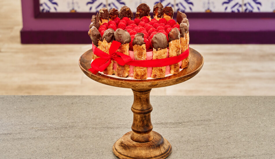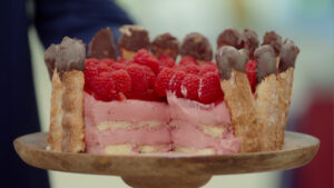 Robèrt en Janny zijn groot fan van de smaak van de frambozenbavarois in deze Charlotte Russe. “De kwark zorgt voor extra frisheid”, aldus Janny.