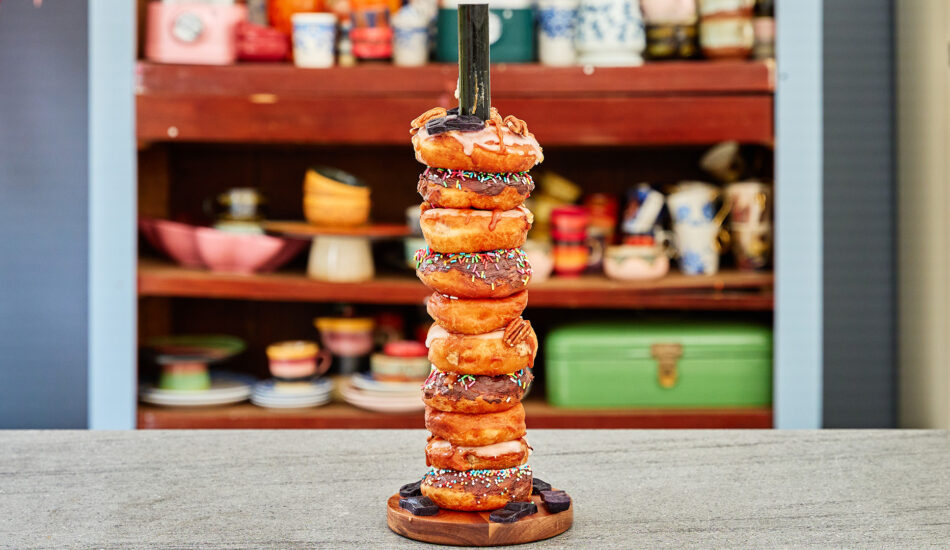 - Stapel de donuts op en decoreer met de autosnoepjes.