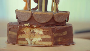 - Smeer de gouden crème af op de zijkanten van de taart en maak een swirl effect.