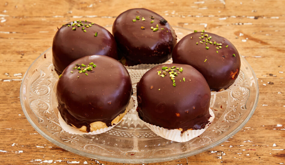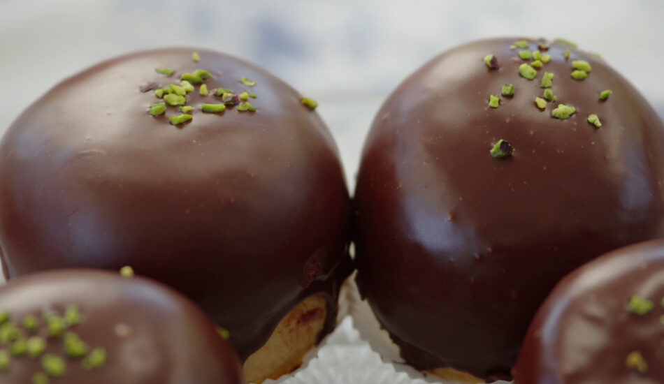 - Bak de bollen ca. 15 minuten tot ze egaal bruin zijn. Laat ze daarna opstijven in de koeling.