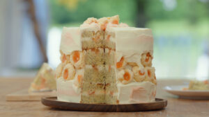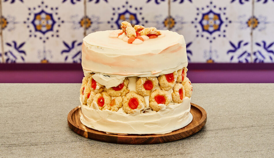Er wordt een taart met goeie looks en frisse smaken voor de jury neergezet. Over de roomkaascrème met camille is Janny zeer te spreken: “Heel lekker en lekker fris,” zegt ze. Robèrt vindt de koekjes erg bijzonder, door de grapefruit die erin is verwerkt.