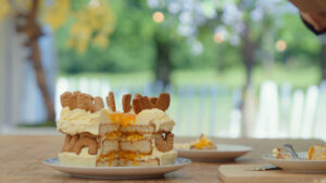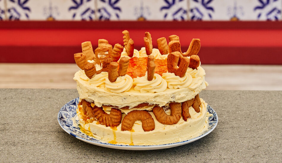 Deze heerlijke taart verrast de jury door zijn bijzondere smaken. “Het zijn hele sterke smaken, maar ze kloppen bij elkaar,” aldus Janny. Het koekje met kardemom krijgt ook de nodige complimenten van Janny: “Mooie structuur, knapperig en bros.” Vooral de combinatie van de bittere sinaasappel met de zoete crème doet het heel goed bij jury.