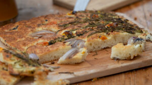 - Bak de focaccia 20 minuten tot goudbruin en knapperig.