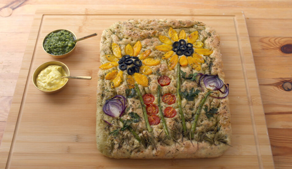- Serveer de dips bij de afgebakken focaccia tuin.