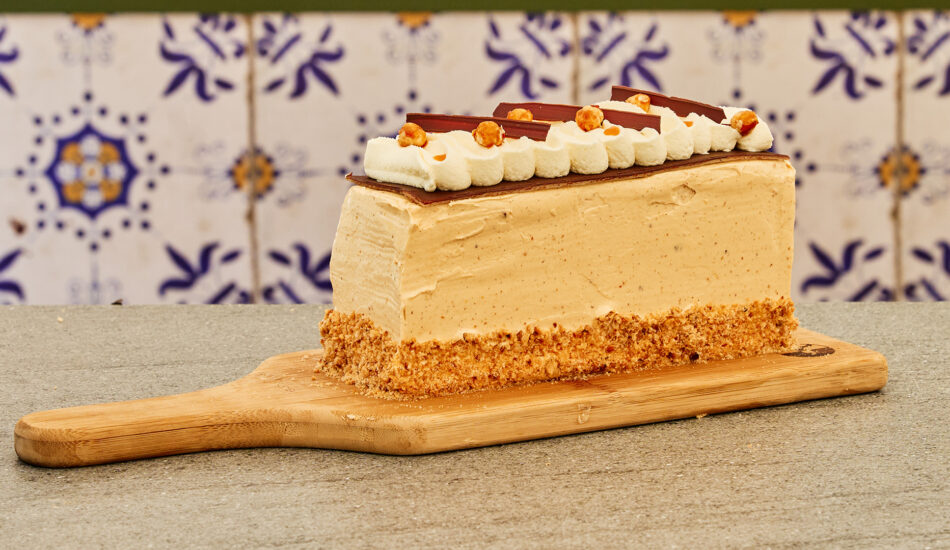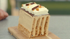 - Eindig met de vierde plak hazelnootschuim bovenop.