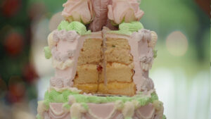De jury is enorm onder de indruk van de taart van Shai. “Er zijn enorm veel verschillende technieken toegepast, ik vind het bijna zonde om aan te snijden”, zegt Robèrt. Ook volgens Janny is deze Marie Antoinette taart tot in de perfectie uitgevoerd.