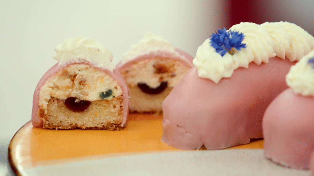 - Ga verder met de marasquin-frangipane om de sloffen af te maken.